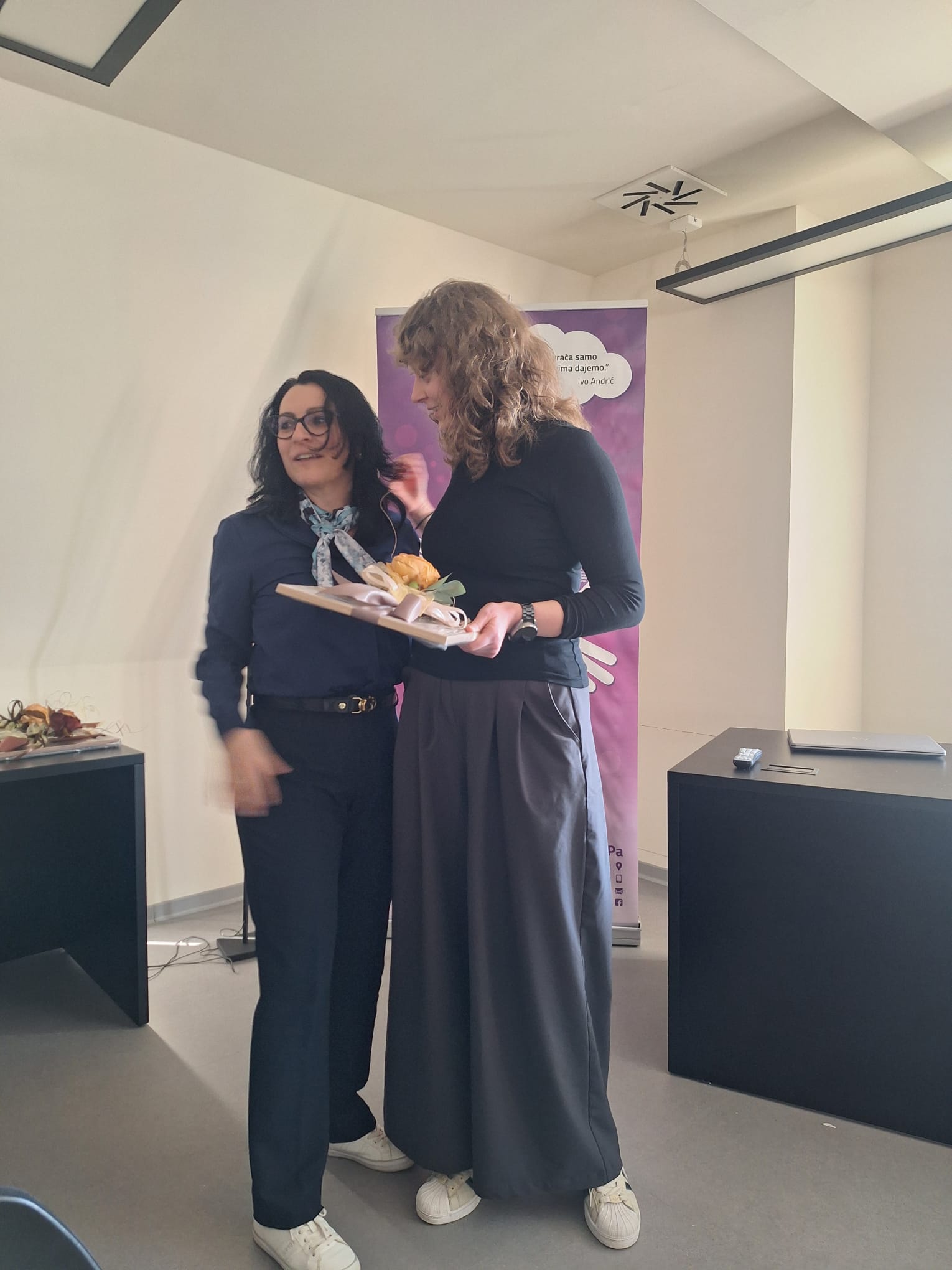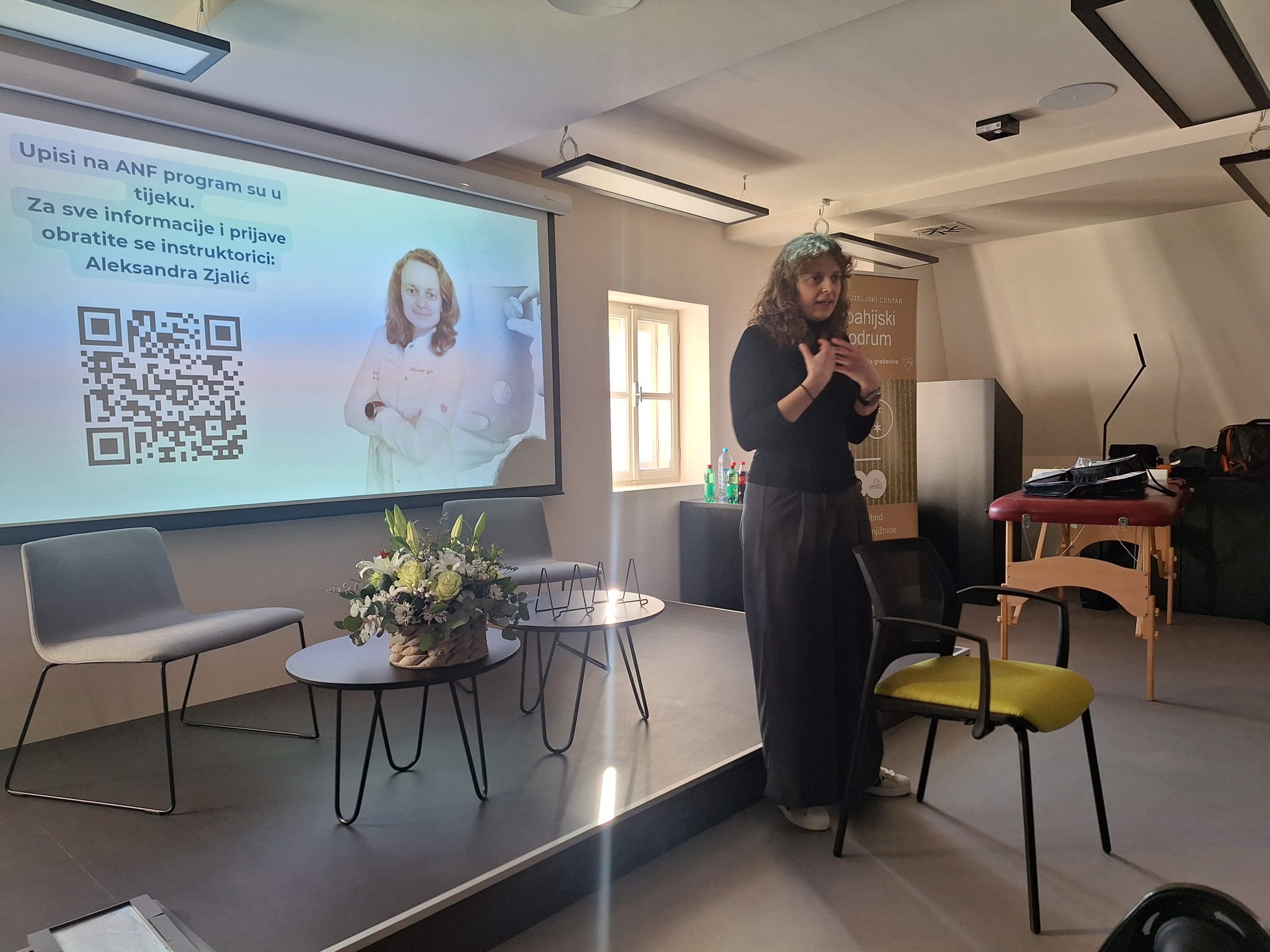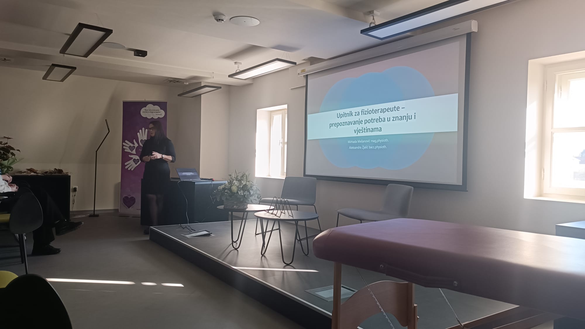Danas smo u dvorani Julijana, u posebnom ambijentu Spahijskog podruma, imali priliku biti sudionici zaista izvrsnog i inspirativnog predavanja. Mirhada Mešanović, mag. physioth., predstavila nam je analizu upitnika o prepoznavanju potreba u znanju i vještinama fizioterapeuta, potaknuvši nas na razmišljanje o vlastitom profesionalnom rastu. Aleksandra Zjalić, bacc. physioth., približila nam je moderne rehabilitacijske metode i njihove mogućnosti u svakodnevnoj praksi. Večer je dodatno obogatila promocija knjige dr. Veljka Đorđevića „Pietrov san“, kroz koju nas je s puno topline i elegancije vodila profesorica Marijana Braš. Bila je to večer znanja, inspiracije i lijepog zajedništva.